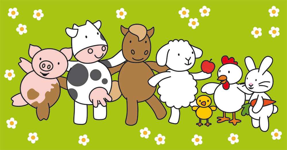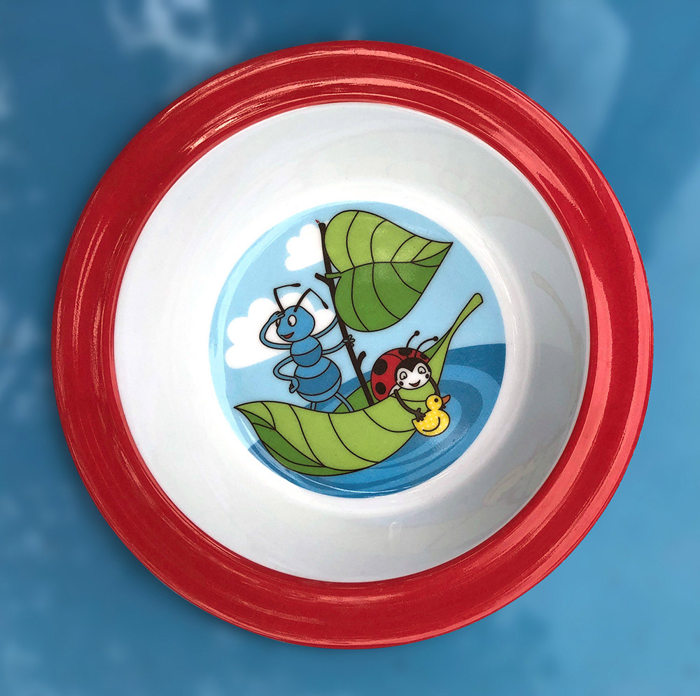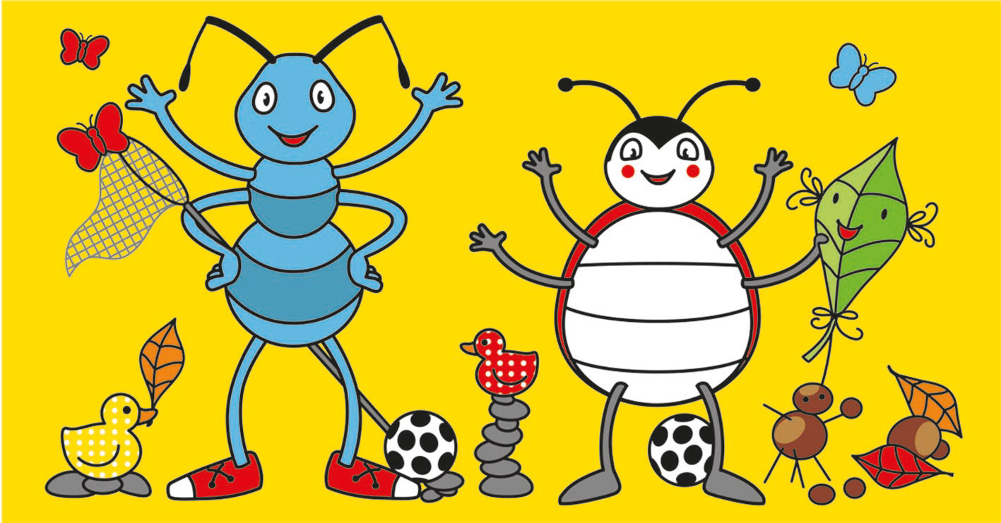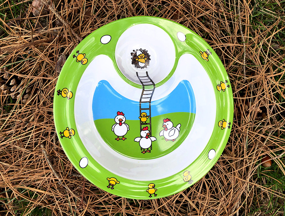 Illustrationen von Charaktären und Szenarien für ein Kindergeschirr zum Thema Bauernhof und Ameise. Entwicklung von der Skizze bis zur Reinzeichnung auf Standskizzen.